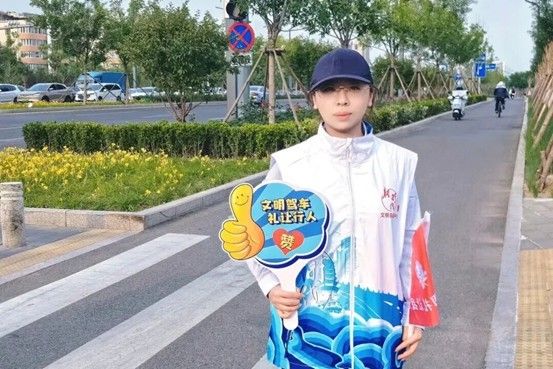 李悅在運河大街義務進行交通引導